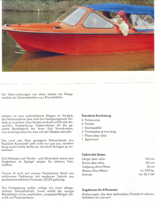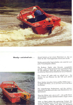 dem Bilderbuch! Nicht nur das sportlich-klassische Design, auch die Fahreigenschaften sind hervorragend. Konzipiert für komplizierte Manöver ist der Trainer das Motorboot, wie man es sich